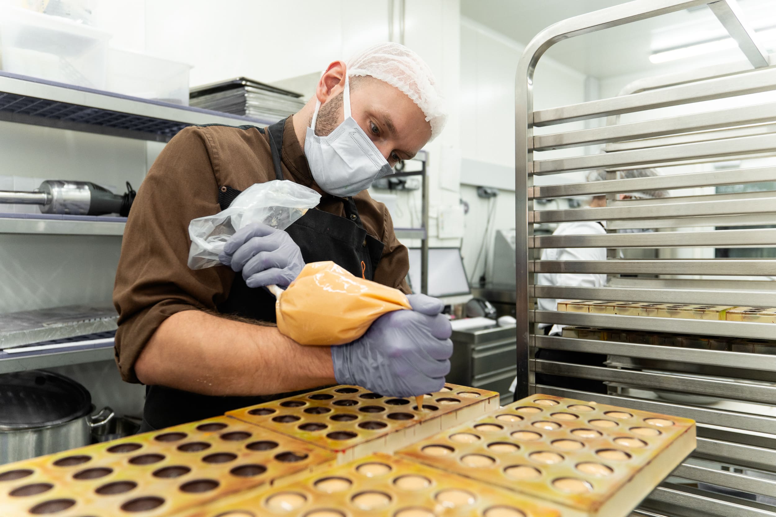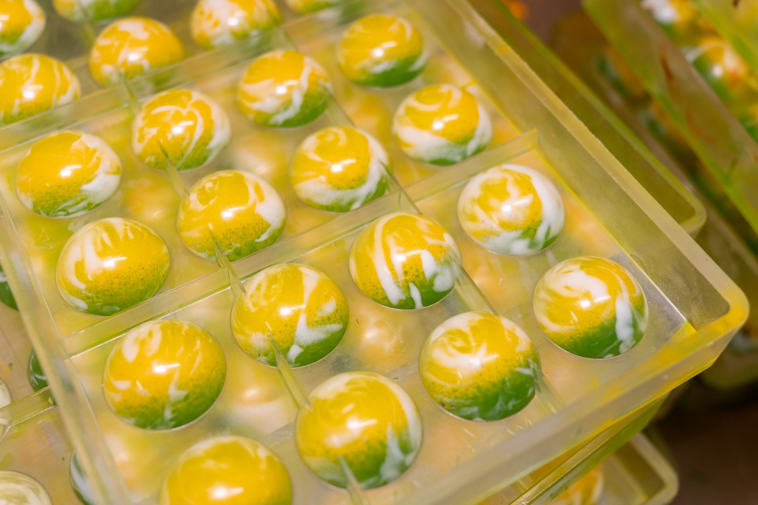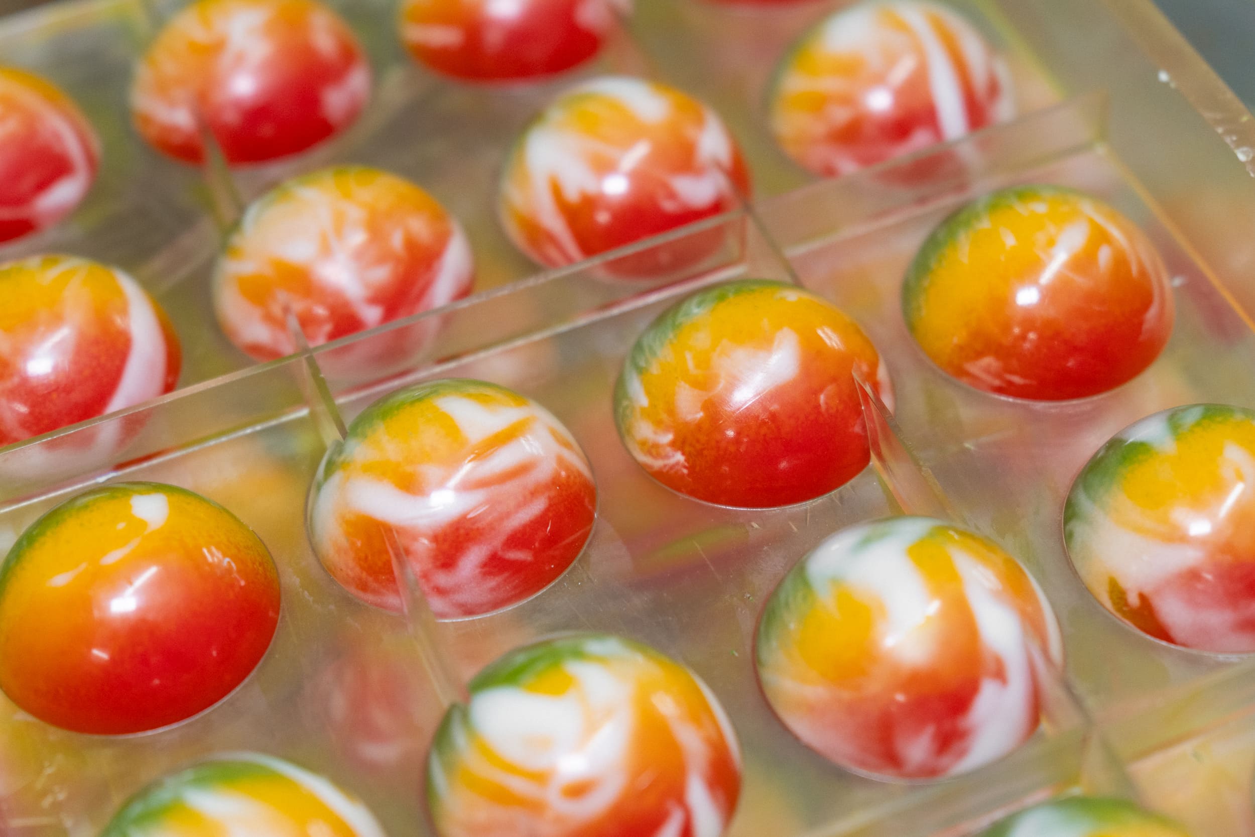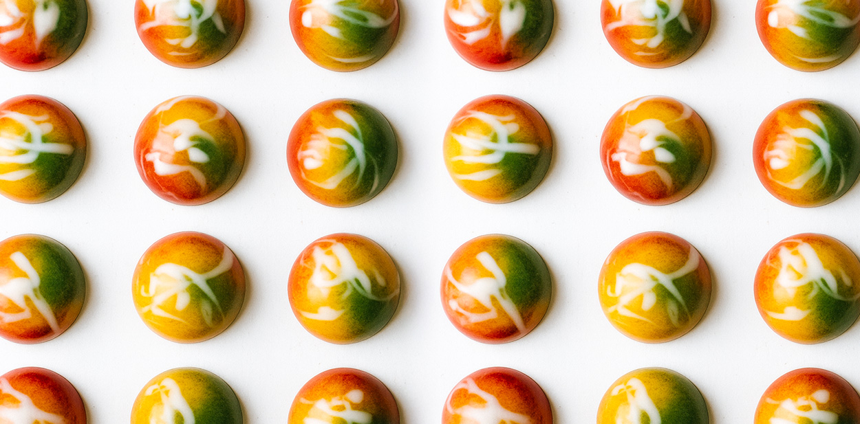 Según Jordi Roca, este bombón “sintetiza de alguna manera los sabores tropicales, nativos de las zonas originales de productores del cacao”, convirtiéndose en una auténtica oda a la tierra, al cacao y a los productos que lo rodean. Su acabado visual —con tonalidades brillantes en rojo, verde, amarillo y blanco difuminados— representa lo que el chef denomina “el mestizaje”, evocando la diversidad cultural y la riqueza sensorial que caracterizan la experiencia gastronómica e inmersiva del proyecto.